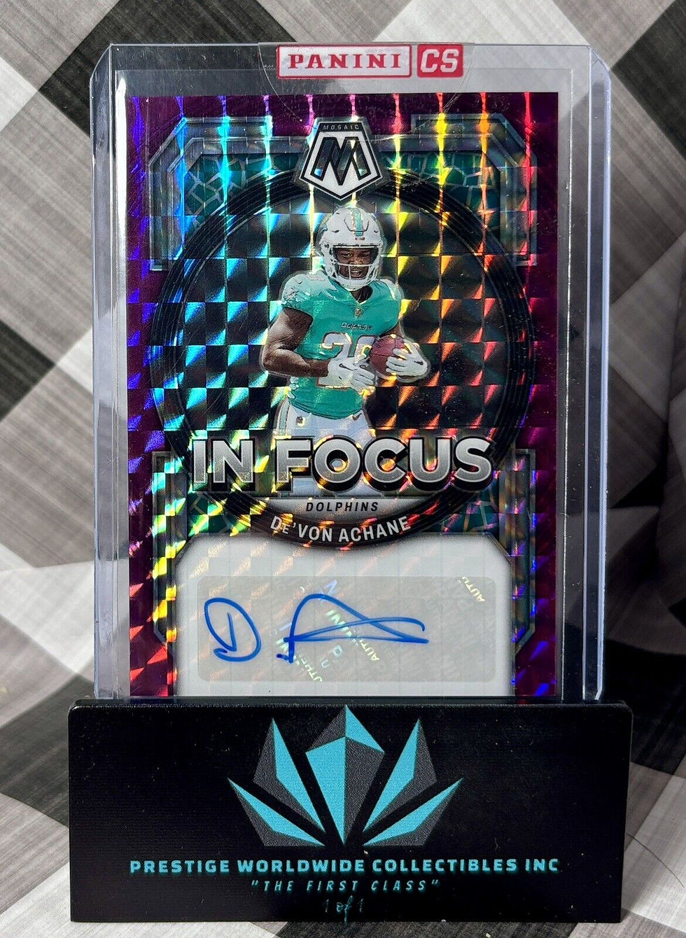 Devon Achane 2023 Mosaic In Focus Purple Auto /49 #IF-DAC Miami Dolphins RC